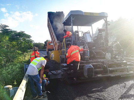 圖為攤鋪瀝青現(xiàn)場 隨后,江輝一行向施工方了解施工機械設(shè)施、機械班組運行狀況,以及各施工工序銜接是否到位等。江輝一再強調(diào)此項工程的緊迫性,要求在確保施工質(zhì)量和施工安全的同時,加快施工進度,保證道路安全暢通。如施工中遇到封道、技術(shù)等相關(guān)問題,他希望施工方盡早提出,以便更好地銜接溝通解決。 據(jù)悉,此次路面維修專項工程計劃投入2700萬元,于9月26日進場施工,臨海南溫向入口匝道先行開展路面專項試驗段施工,目前已完成約7000平方米瀝青路段鋪設(shè),后續(xù)工程正緊張而有序的進行中,高速路段指數(shù)提升指日可待。 李夢君