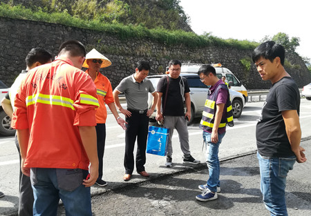 集團總工程師江輝到臨海南匝道現(xiàn)場查看病害