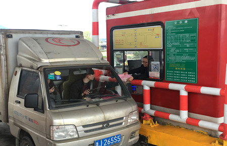 圖為收費員向過往司乘人員發放倡議書 安全環境是我們每個人的期望,所以需要我們的共同努力和配合。