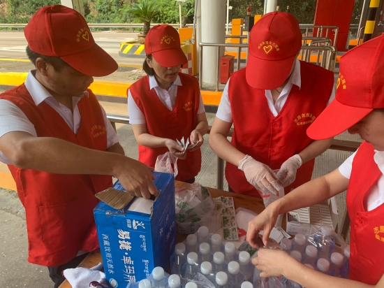 圖為志愿者在準備防暑物品 “師傅,辛苦啦!這袋子里有礦泉水、風(fēng)油精、人丹一些防暑物品,您拿好,路上帶著以備不時之需!” “沒想到,你們收費站還有這個服務(wù),這次我要出趟遠門,說不定路上還真能用的上,謝謝呀!”一位接過禮品袋的老師傅連聲道謝。