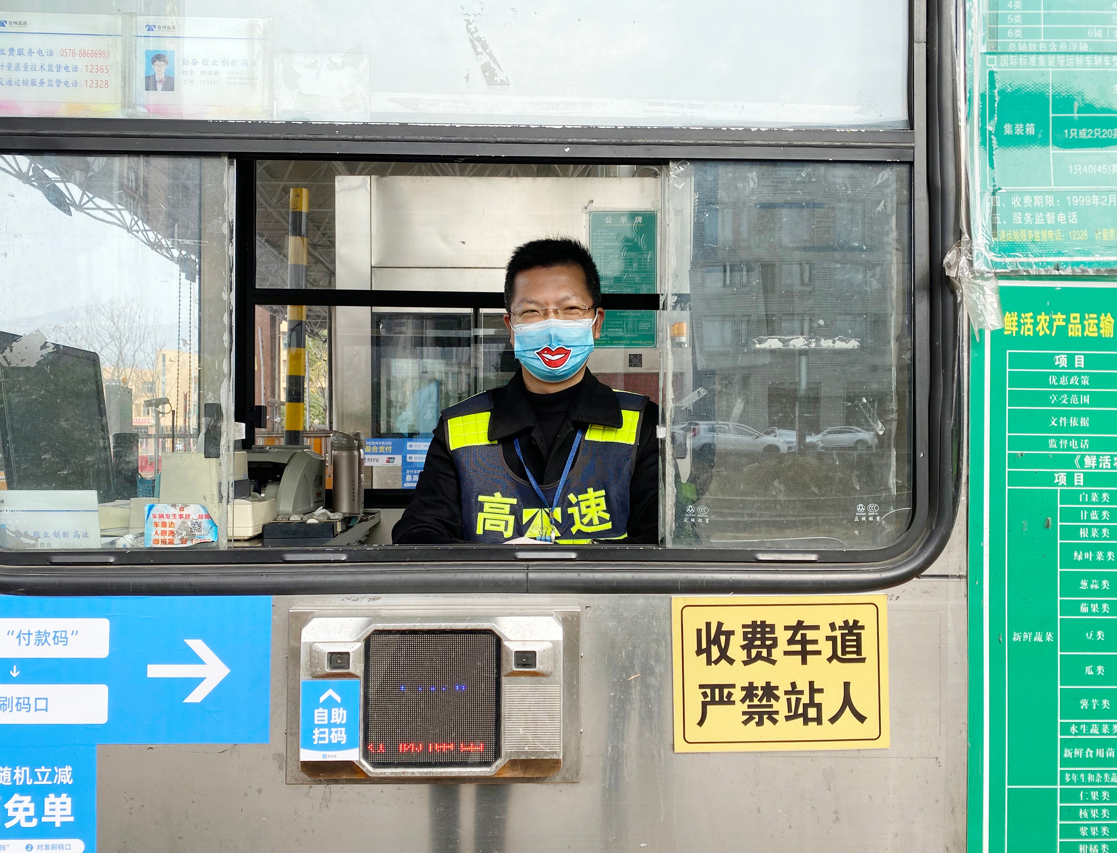 我“形”我秀,文明服務(wù) “你的口罩好可愛(ài),好特別”。 新春將近,這聲音來(lái)自廣大司乘,縈繞在臺(tái)州收費(fèi)所崗?fù)ぁkm然疫情形勢(shì)依舊嚴(yán)峻,但是暖心文明服務(wù)更要堅(jiān)守。收費(fèi)員上崗時(shí)必須戴上口罩、手套等防護(hù)措施,臺(tái)州收費(fèi)所堅(jiān)持以微笑傳遞服務(wù),反對(duì)一層薄薄的防護(hù)疏遠(yuǎn)與廣大司乘的距離,為了維護(hù)窗口形象,提升文明服務(wù),做到冷冬暖心,臺(tái)州收費(fèi)所動(dòng)腦動(dòng)心出真招,將一枚枚笑容“印在”口罩上,一個(gè)個(gè)小小的笑臉,溫暖著來(lái)來(lái)往往司乘人員焦灼的心,在做好疫情防控工作的同時(shí),也為收費(fèi)服務(wù)增添一絲趣味。 臺(tái)州收費(fèi)所送上一份安全、一心祝福、一抹微笑、一套年味兒,這個(gè)回家旅程您還冷嗎? 袁莉