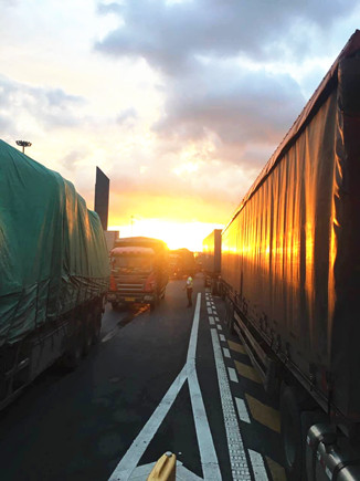 圖為分流現(xiàn)場 為保證車道安全、有序、暢通,該所認(rèn)真對待,除做好零鈔、備用發(fā)票、備用打印機(jī)等常規(guī)的準(zhǔn)備工作外,凌晨4點30分,行政值班人員、征費二班全體收費員便開始在車道嚴(yán)以待陣,接到分流通知后,開啟全部車道,同時ETC切換成人工。班長去內(nèi)廣場維持通行秩序,其中一名員工在外廣場指揮及做好導(dǎo)向工作,行政值班人員參與車道旁站,業(yè)務(wù)熟練的員工在崗收費,在場人員分工有序,密切配合。直至7點,隧道中排燈拆除完畢,收費車道上僅3個出口可以通行,不過在全體人員的共同努力下,未發(fā)生擁堵事件,該所順利完成分流工作。 夏蓮萍