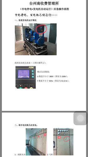 “當(dāng)市電斷開,聽到發(fā)電機(jī)響起時(shí),只需用扳手把切換銷控切換到自發(fā)電,然后按一下各區(qū)域的用電開關(guān)即可,喏,就這幾個(gè)關(guān)鍵開關(guān)……” 近日,臺州南收費(fèi)所的兼職電工金小斌在配電房耐心對前來學(xué)習(xí)自發(fā)電操作的員工作現(xiàn)場講解,“另外,操作過程中要有安全意識,碰到異常情況停止操作。”