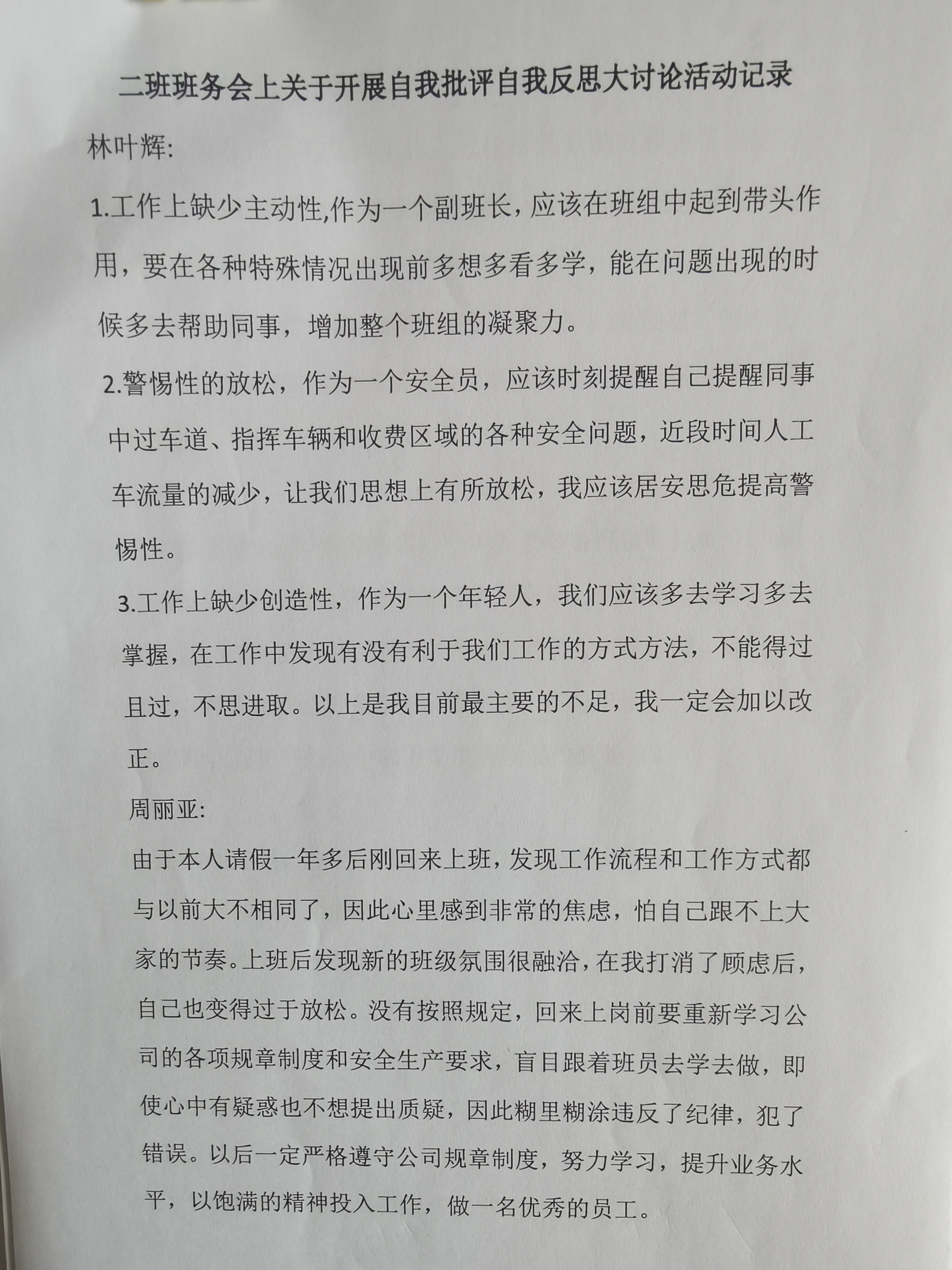 (圖為員工自我批評(píng))