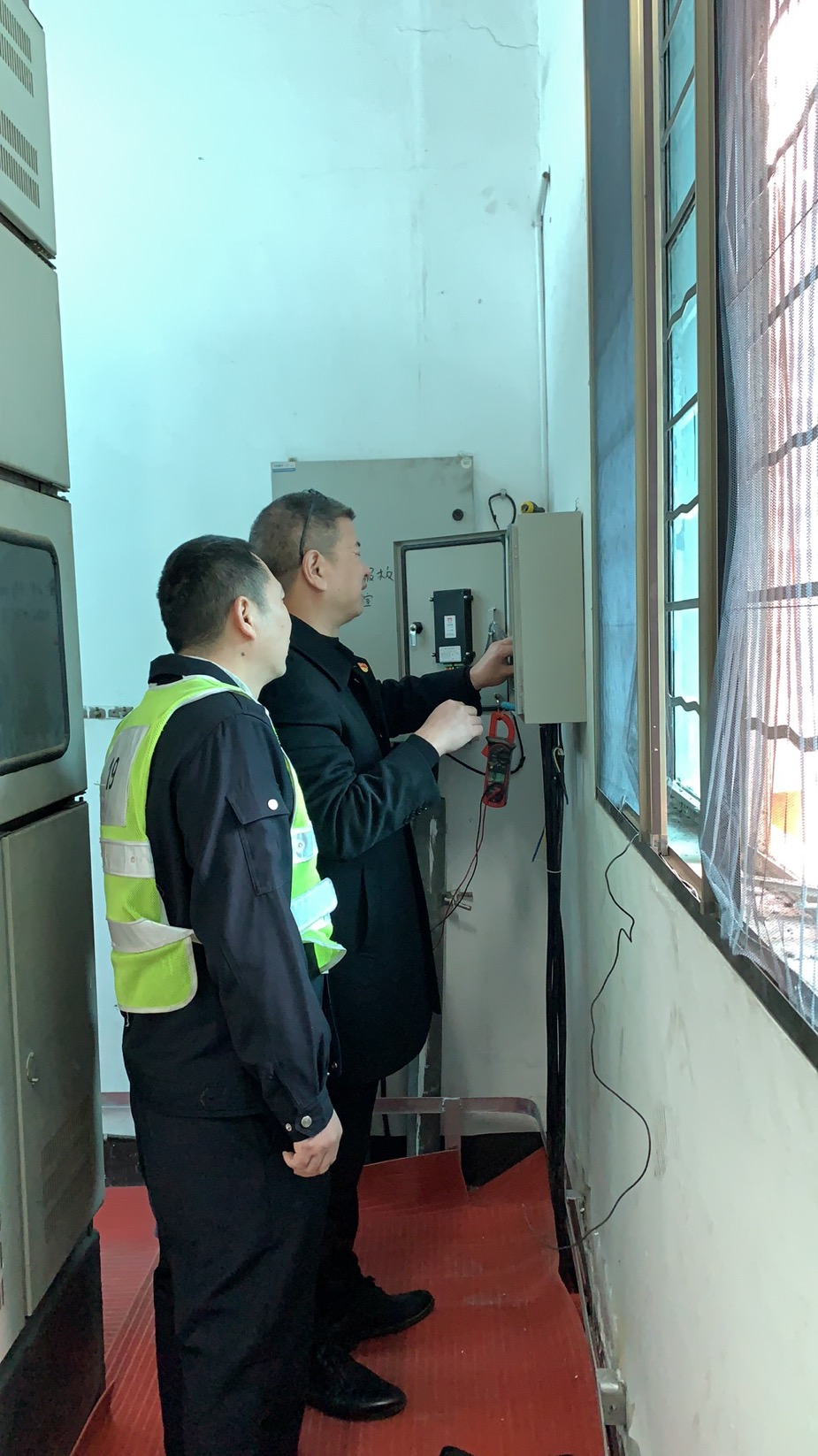 圖為設備設施檢查 當天,該所開始春運專項安全生產大檢查,要求春運期間要加強安全管理和責任,強化監(jiān)督檢查,抓好安全預防。10日,該所又做了一次全面的安全檢查和隱患排查,對隧道兩邊的高邊坡、豎井、高位水池、配電房、隧道內外的各個消防設施等進行重點檢查,及時處理發(fā)現的問題,并做好相應檢修工作。12日,對隧道南廣場的高桿燈進行改造。14日,管理所進行了全面的衛(wèi)生大打除,操場、辦公室、食堂、寢室、衛(wèi)生間的各個角落,逐一進行清理,干凈整潔迎接新年。