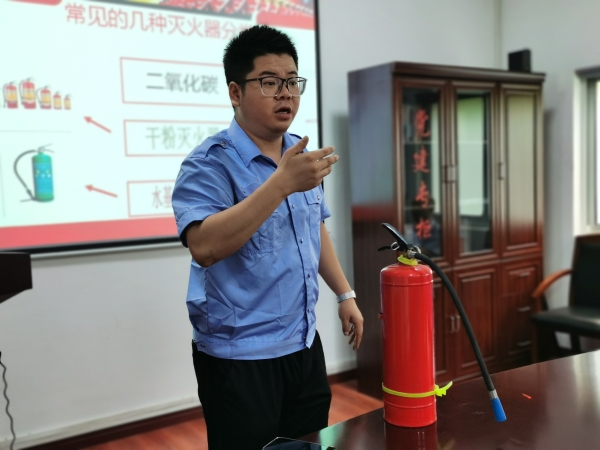 圖為楊金德示范滅火器操作方法 基于隧道所工作場所配備的二氧化碳和水基滅火器,楊金德再次示范了滅火器的操作方法,又介紹了水基本滅火器的工作原理,它在噴射后,成水霧狀,瞬間蒸發(fā)火場大量的熱量,迅速降低火場溫度,隔離氧氣,從而達到快速滅火的目的。 培訓課中,一則則鮮活的案例警示大家,火災之患不容忽視,安全生產要做到“防災結合,預防為主”,火災的初期是最佳救援時機,家里、車上、單位都應配備滅火器及其他滅火設備,而且還要會使用。不要讓屏幕上的悲劇多次重演,人人要時刻敲響安全警鐘, 陳智慧
