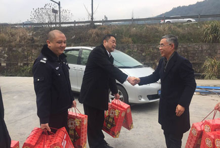 圖為公司董事長謝文君在一線慰問 每到一所,謝文君都向在崗?fù)?nèi)收費和監(jiān)控室內(nèi)的員工送上新春祝福,道聲:“辛苦了!”詢問值班安排,了解車流量情況。當?shù)弥斕燔嚵髁刻貏e大時,謝文君要求各收費所即使是小型客車免費時間,也要合理安排上崗員工休息、吃飯時間,增強收費力量,加強各所間交流,及時掌握車流量變化,維護好通行秩序,確保安全暢通。要求各隧道所加強監(jiān)控,時刻關(guān)注隧道內(nèi)車流變化,及時提醒過往司機減速慢行通過隧道,確保過往司乘人員過個祥和平安的春節(jié)。 此外,謝文君還到食堂、宿舍查看員工在節(jié)日期間的飲食和住宿情況。了解在崗員工個個精神飽滿、熱情洋溢,謝文君感到欣慰,鼓勵大家繼續(xù)努力,提供優(yōu)質(zhì)的文明服務(wù),樹好公司形象。