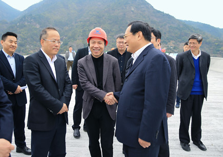 圖為市長張兵再次與公司總經理張建平親切握手 張兵一行實地踏勘了內環路(黃巖段)6#立交和8#立交工地,詢問了解目前工程的進展情況。在6#立交黃長放射線橋上,幾幅彩印工程進展圖清晰地展現出當前工程面貌,張兵對相關單位的攻堅成果給予充分的肯定。他指出,內環路主線工程建設已臨近最后關頭,各單位要更加重視安全施工,配足施工力量、技術力量,在保質保量的基礎上加快工程進度,確保11月11日主線如期貫通。 對于甬臺溫高速公路南城互通項目,張兵要求相關部門務必要統一思想,抓緊制定施工方案,盡早開工建設。 公司總經理張建平表示,臺州高速集團會認真按照市委市政府要求,保證如期完成任務。 陳林偉
