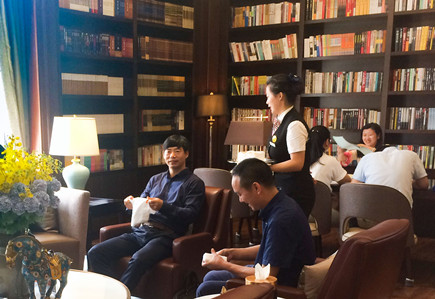 圖為雙方人員在案場書房洽談現場 此次考察的主要目的是學習佳兆業公司在銷售管理上面的先進經驗。雙方人員圍繞銷售管理、銷售策劃、團隊建設、模式經驗等方面進行了真誠而深入的溝通與交流,達到了深化了解、取長補短的目的。在談到物業管理時,陳保衛強調,服務理念至關重要,沒有深入人心的理念就不可能做到無微不至的服務。他指出,見微知著,滴水見精神,從細節上尤其能夠看出服務的品質。他對佳兆業集團在物業管理上精益求精、注重細節的追求表示贊賞。 高速房產集團公司董事長、總經理羅小將,造價部、銷售部、辦公室相關人員陪同參與考察。 包啟曉