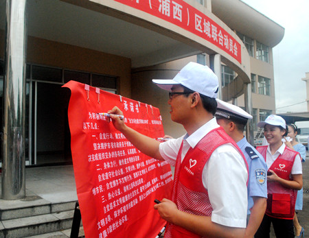 圖為公司副總經(jīng)理章海峰在承諾書上簽名
