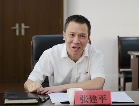 圖為公司黨委副書記、總經(jīng)理張建平介紹公司黨建工作情況