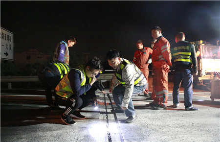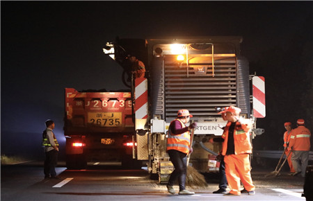 確定日期時(shí)間。施工前夕工程部負(fù)責(zé)人反復(fù)與交警、路政等部門溝通協(xié)調(diào),渠道暢通,最終達(dá)成一致意見,為盡量避免給公眾出行帶來影響,施工基本采用夜間斷流封道方式進(jìn)行。施工過程中與高速交警、路政配合默契,封道都在規(guī)定時(shí)間內(nèi)開始結(jié)束,盡所能減輕施工對高速營運(yùn)影響,保證路段通行能力。