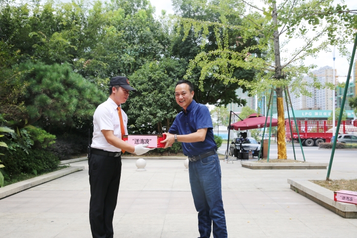“這么熱的天氣,大家都辛苦啦!感謝你們的辛苦付出,高溫工作,一定要注意避免中暑。”集團(tuán)副總經(jīng)理陳保衛(wèi)、羅小將、工會主席項義超、征費(fèi)部負(fù)責(zé)人等相關(guān)人員,到房產(chǎn)公司、大溪嶺隧道所、溫嶺西、臺州南等收費(fèi)所,為一線員工送上消暑物資,慰問堅守在酷暑下的工作人員。