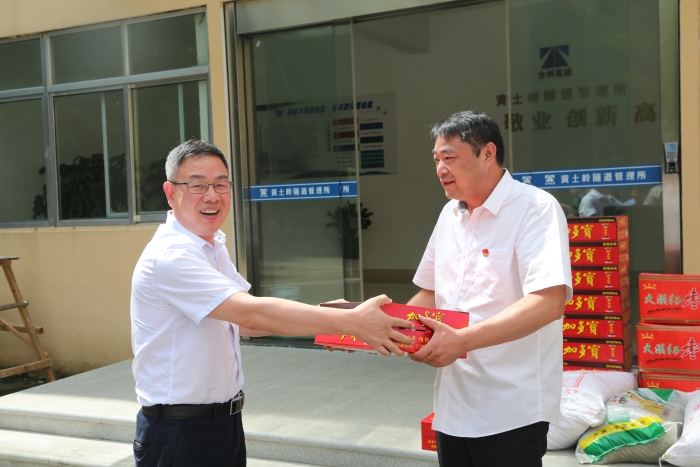 陳文波一行首先來到臺州高速公路交警總隊臺州支隊和高速路政的駐地,向他們送上了消暑物資,對他們一直以來有力維護(hù)高速公路秩序,保障本路段有序運(yùn)營及高溫下堅守一線工作表示慰問和感謝,也請他們繼續(xù)支持公司工作,確保高速公路安全暢通。