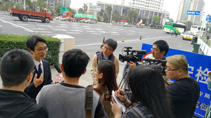圖為記者在收費站附近采訪當晚征費四班值班班長鄭星 “那天晚上,原本只開1號、3號、4號三個車道的,因為該駕駛員鬧事,為保證通行秩序,收費站后來先后加開2號、5號車道。”在那晚值班的征費四班班長鄭星告訴大家。駕駛員對免通行政策、免通行時間段還存在誤解的情況,之前收費站也存在過駕駛員拒付通行費的現象,但沒有像此次拒付時間長、影響又惡劣的。