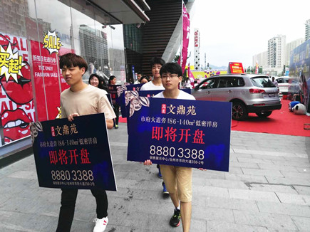 圖為文鼎苑銷售部人員在商場內(nèi)開展宣傳活動 在活動現(xiàn)場,參加人員一邊做陶藝,一邊詢問樓盤詳細情況,氣氛十分熱烈。同一時間,在萬達廣場和銀泰商場內(nèi),文鼎苑銷售部的帥哥美女們手持樓盤開盤廣告宣傳牌,他們一個個面帶笑容、朝氣蓬勃、專業(yè)細致地為前來咨詢的客戶講解樓盤的具體情況。宣傳隊伍所到之處,吸引了大批客戶的關(guān)注。 以上活動是文鼎苑項目首批開盤前期營銷推廣中的其中一個環(huán)節(jié)。為營造良好的銷售氛圍,在前期,仁和公司通過大型戶外廣告、微信公眾號實時更新、新聞媒介重點發(fā)布等,陸續(xù)進行多方位媒體宣傳攻勢。同時,謀劃舉辦了“文鼎苑家風(fēng)征集活動”、立夏、母親節(jié)、“520與愛相約”、端午節(jié)、兒童節(jié)等節(jié)假日專題宣傳活動。此外,還安排了銷售人員在周末深入椒江拆遷區(qū)進行拓客派單活動。 目前,高速房產(chǎn)集團的員工們正戮力同心,奮力拼搏,為全力打響文鼎苑首期開盤炮而努力奮戰(zhàn)。 包啟曉