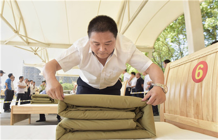 臺州高速各所、中心自從實行準軍事化管理之后,內務整理便成了一項不可缺少的內容。走進任何一個宿舍,整齊的床鋪,擺放劃一的牙刷、杯子、毛巾、臉盆等已經形成了一道亮麗的風景線。從細節著手,從小事做起,特別“豆腐塊”疊被,其中體現出的嚴謹、整齊劃一的作風,已經化為一種無形的力量,影響著員工的工作與生活,也是構建臺州高速企業文化的重要部分。 比賽中,各選手熟練地運用“壓、折、擠、掏”等基本動作,快速完成了從棉被到“豆腐塊”的升華,干凈利落的整理動作,規范扎實的整理手法,展示了日常內務水平。而且水平不相伯仲,如同開頭所說,展示成果讓教官很難區分成績。值得點贊的是臨海南周萍,比賽中唯一的女選手,英姿颯爽,動作利落大方,疊被、整理棱角迅速而嫻熟,最終以優秀的成績榮獲三等獎。 在初試、復試兩輪比拼中,場內選手們使出渾身解數角逐激烈,場外各啦啦隊熱情高漲,而且也都在細細觀摩,互相點評,氣氛甚為熱烈。經過教官打分后,最終共有6名選手脫穎而出,其中臺州南王益民獲得一等獎,徐恩德、李寧等5人分獲二、三等獎。 鄭蔚