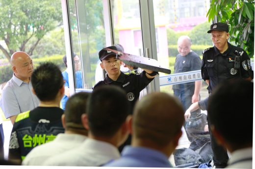本次活動分成防暴器械使用培訓(xùn)、器械使用練習(xí)和防盜搶應(yīng)急演練三個環(huán)節(jié),以培訓(xùn)和演練相結(jié)合的形式開展,以有效提高一線職工防暴器械使用技能和突發(fā)事件應(yīng)急處置能力。活動邀請了黃巖公安分局巡特警大隊大隊長盧健星,該大隊獵豹突擊隊隊員、專職教官盧尚明到場指導(dǎo)。
