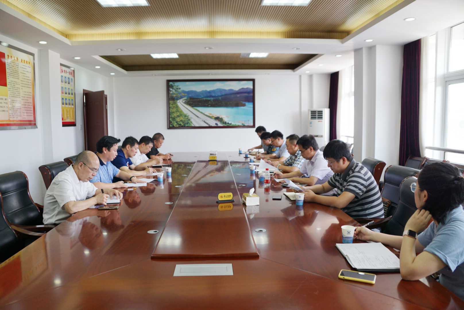 圖為會(huì)議現(xiàn)場 馬德勝對(duì)公司在養(yǎng)護(hù)及三防工作上取得的成效表示肯定,同時(shí)要求認(rèn)清形勢,高度重視三防及安全工作,安全工作不能有僥幸心理,堅(jiān)持預(yù)防為主,要開展經(jīng)常性排查、演練、檢測工作。作記錄存檔要及時(shí),事故處理要及時(shí),信息報(bào)送要及時(shí)。 江輝對(duì)市公路局領(lǐng)導(dǎo)一直以來的大力支持表示感謝,公司將對(duì)下階段管養(yǎng)工作做更高的要求,爭取在養(yǎng)護(hù)工作中更上一臺(tái)階。 李夢君
