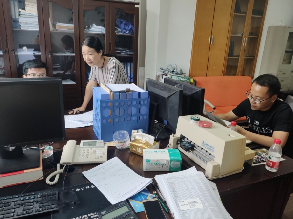 公司總會計師章彩霞帶領財務人員 到房產公司開展賬務檢查 7月27日下午,公司總會計師章彩霞帶領財務結算中心與計財部相關人員到高速房產公司,就資金管理、賬戶管理、賬務處理等工作進行監督檢查。