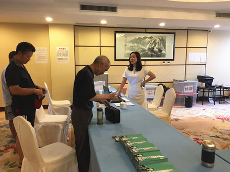 圖為集團(tuán)副董事長(zhǎng)、總經(jīng)理張建平在椒江收購(gòu)點(diǎn)為股東服務(wù)