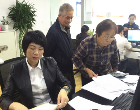 圖為椒江收購點現場 不巧的是,剛好收購點的股東特別多,輪到老兩口辦理得等待些時間,正好他們可以坐著仔細看看收購點的各類宣傳資料,等待中友好而耐心。 當問及王阿姨是哪年購買臺州高速股權的,她邊說邊小心地拿出一張一張發黃的原始資料,“可早啦,94年買的呢,估計你那時都還沒上學呢。”原來她是替臺州市椒江星明實業總公司辦理法人股轉讓的。作為工作多年的財務人員,她對待每個辦理環節都甚是仔細。架著一副老花眼鏡的她,坐在工作人員的身旁,耐心地問清轉讓疑問,逐字地看著股權轉讓協議書,認真地填好股權轉讓款單,不管是簽字還是蓋章都不慌不忙。 “年輕人,你們可也得把資料看看仔細,如果出差錯讓我再來,那可得你們準備好出場費請我來哦。”王阿姨開著玩笑對工作人員說道。 陳林偉