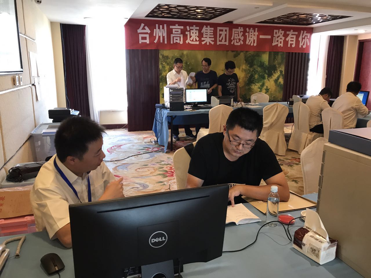 圖為工作人員與仙居縣國資局相關人員商量股權收購宣傳事宜