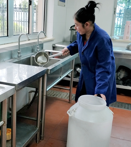 圖為大溪嶺隧道所用上了清澈的自來水 “之前,用水量緊張, 用水條件差,要拿勺子這么舀著洗,費時費力,現(xiàn)在終于不用再拿勺子盛水洗菜了,方便!”食堂阿姨笑瞇了眼。
