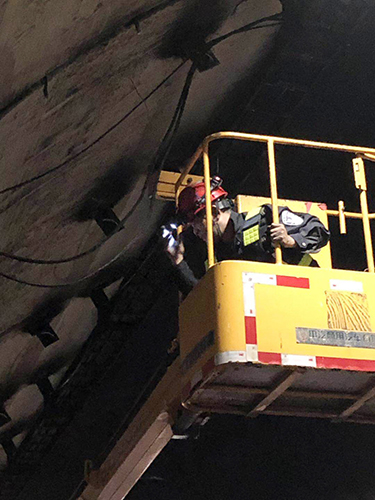 圖為各方人員集聚商討搶修方案 黃土嶺隧道所立即啟動應(yīng)急搶修預(yù)案,聯(lián)合高速交警、工程養(yǎng)護(hù)部、施救中心展開緊急搶修工作?,F(xiàn)場,各方人員集聚商討搶修方案、檢查安全措施、布置搶修作業(yè)。登高車上,黃土嶺隧道所執(zhí)勤二隊(duì)隊(duì)長林朝波等一批搶修人員率先清理斷落的電纜,調(diào)整接線、緊固螺栓……各項(xiàng)工作環(huán)環(huán)緊扣,緊張而有序。