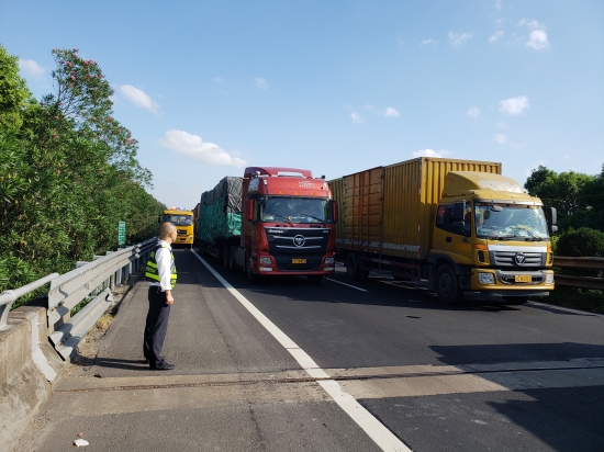 接到通知,凌晨4點剛救援了一輛拋錨車的駕駛員潘志平和輔查員童志敏火速趕往現(xiàn)場。盡管一夜的忙碌讓他倆的臉上寫滿了疲倦,但還是義無返顧地參與救援。