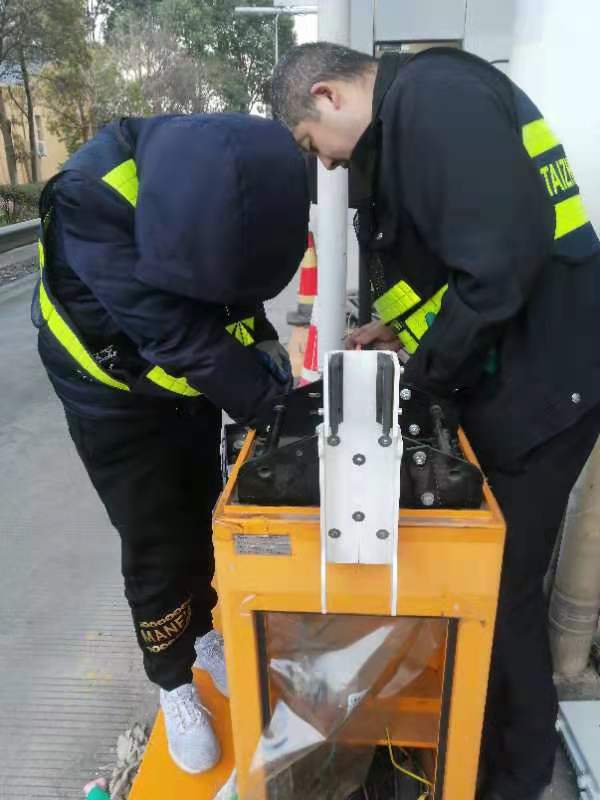 1月20日,公司董事長、總經理陳文波到收費所現場查看,要求加快速度抓緊搶修崗亭,重新安裝好各項設備設施,盡快開通車道。接到任務后,維養中心緊急召開會議討論,制定新崗亭安裝、設備調試方案。 21日下午4點左右,訂購的新崗亭和損壞的設備設施陸續到位,中心值班人員協同設備廠家一起將其安放并固定至車道原位置。因崗亭傾倒時拉斷了底下很多線纜,在拆除設備時又因為緊急搶修需要沒有作相應標注,現場各種電線接頭雜亂如麻。考慮到夜間查線、接線存在一定的安全隱患,也不利于施工,搶修人員決定第二天再戰。