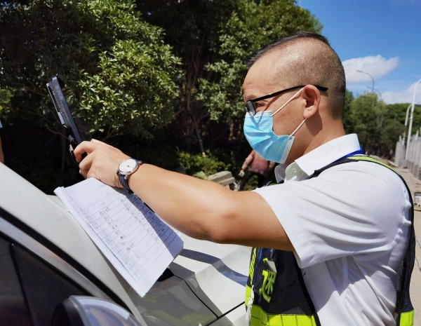 這是征費(fèi)四班班長鄭星和駕駛員的對話,他手持iPad,不停地在屏幕上滑動著、查詢著。天氣炎熱,大貨車開車時較為顛簸,3M膠軟化黏不牢,ETC設(shè)備容易脫落。ETC設(shè)備一旦掉落,則會提示“標(biāo)簽已失效”,就無法正常工作,不能實(shí)現(xiàn)不停車出入高速公路ETC車道,給來往司機(jī)和收費(fèi)人員增添了很多麻煩。為全力配合ETC服務(wù)需要,鄭星冒著酷暑高溫,不厭其煩地幫著司乘人員解決問題,一天下來工作服濕了又干,干了又濕,他就是臺州高速上的最美堅(jiān)守者。