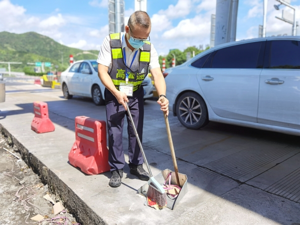 烈日灼燒著大地,高速兩邊的樹葉都被曬得打了卷,悶熱的空氣讓人喘不過氣來,在溫嶺西收費(fèi)站,不少司乘人員在過站時,隨手將食品的塑料袋、煙頭、塑料瓶等垃圾丟棄在收費(fèi)站出口處,班長陳軍見到隨時清掃路面,保持收費(fèi)區(qū)域衛(wèi)生干凈整潔。彎腰、清掃、起運(yùn),看似簡單的一組動作,陳軍每天要重復(fù)幾十次,衣服一天不知要被汗?jié)穸嗌俦椋?/span>但他堅(jiān)持以良好的形象展示臺州高速的精神風(fēng)貌。他就是臺州高速上的最美堅(jiān)守者。