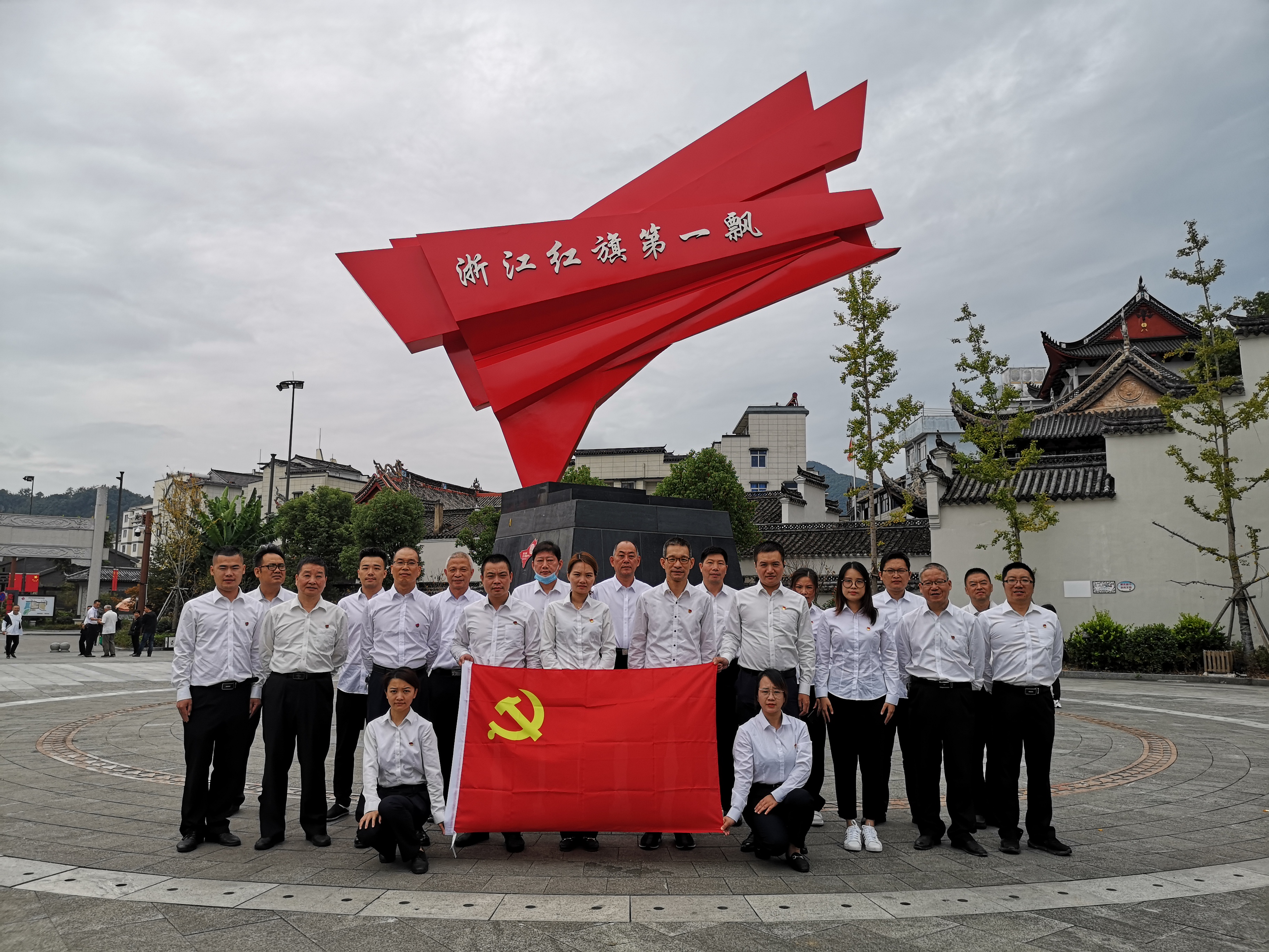 (圖為紀(jì)念碑黨員合影) 亭旁起義打響了浙東武裝奪取政權(quán)的第一槍,建立了浙江第一個(gè)蘇維埃政權(quán),被譽(yù)為“浙江紅旗第一飄”。 黨員同志們沿著先烈們的足跡,接受著紅色精神的洗禮。在亭旁起義紀(jì)念碑下,同志們重溫入黨誓詞;在紀(jì)念館,聆聽亭旁起義的歷史;在城隍廟,感受紅色區(qū)域的家國(guó)情懷……黨員們紛紛表示,一定會(huì)銘記歷史、繼承傳統(tǒng)。