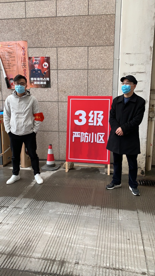 黨員包啟曉,在星洲小區援助社區逐家逐戶發放通行卡,并多次參與社區卡點測溫志愿服務。